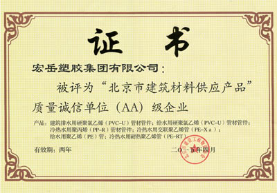 质量是产品的核心价值,诚信是企业的发展动力。凭借过硬的产品质量和良好的企业信誉,继2011年入选首批北京建筑材料供应单位产品质量诚信A级企业之后,2015年4月,leyu.乐鱼获评北京建筑材料供应产品质量诚信AA级企业。