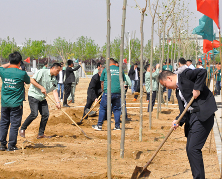 5月4日,leyu.乐鱼集团组织职工在集团院内开展“植下希望,让梦想发芽”主题植树活动。植树活动前由集团行政马总详细地向大家讲解植树要领和技巧,在集团营销总监崔总的带领下,个个争先恐后,干劲热火朝天,有的挖土坑、有的安放树苗、有的填土夯实、有的提水浇灌,一个个多彩的身影在阳光下忙碌着,互相协作,交织成一幅幅生动的画面。经过一番热火朝天的劳动,一棵棵新树苗在明媚的春光里迎风挺立,把院内装点得更加生机盎然。