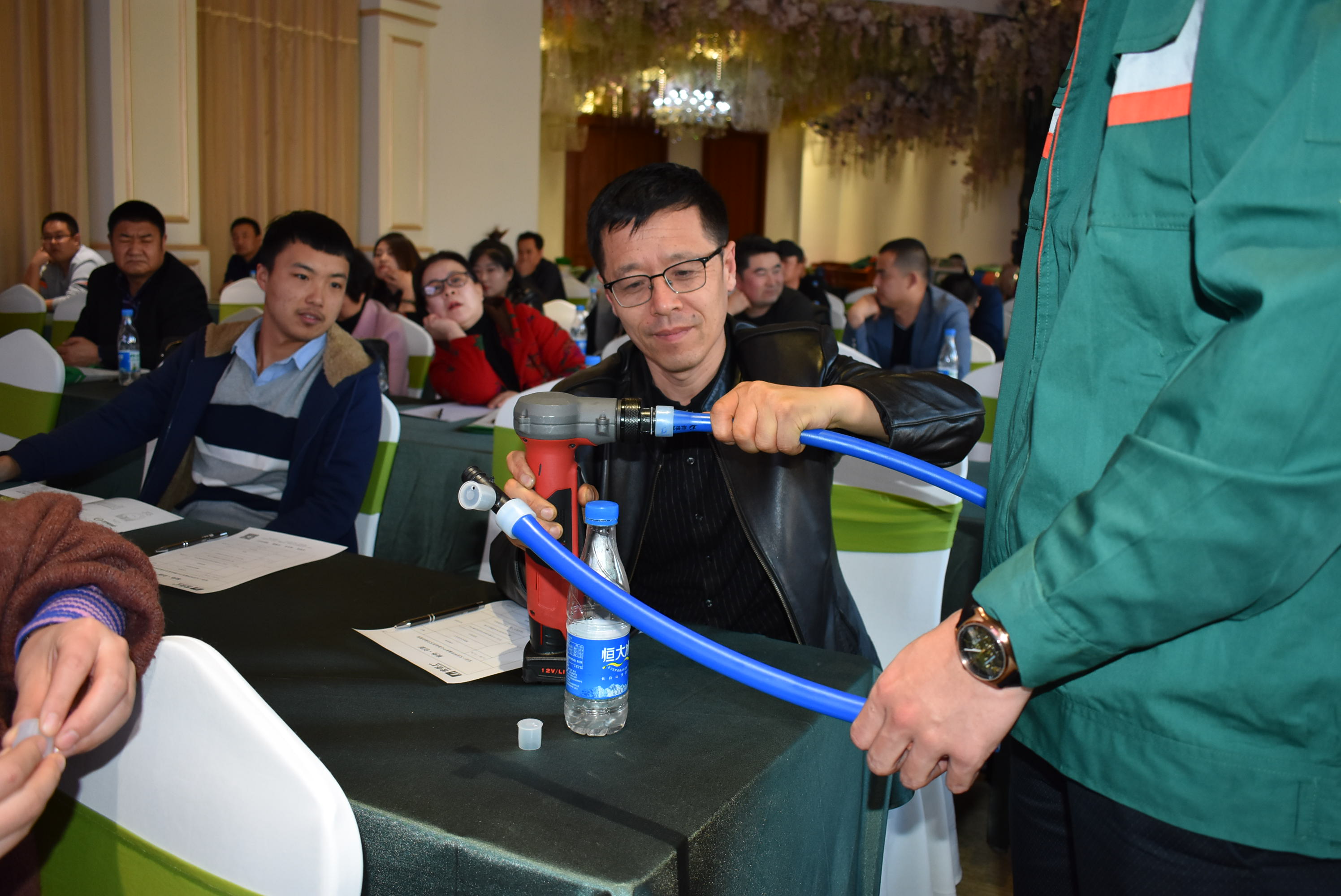 重点提出leyu.乐鱼1+PE-Xa给水系统较目前市场主流给水系统降低70%的风险点,耐压高67%,耐温高32%,会上通过现场实验,展现了PE-Xa给水管超强的记忆功能,应对变形折伤加热即可无损复原。